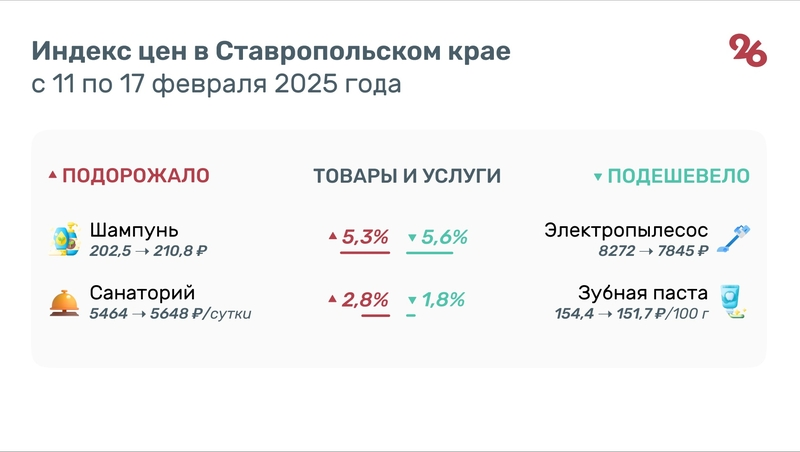 Среди непродовольственных товаров и услуг на 5,3% выросла цена шампуня — 210,8 руб. за 250 мл. На 2,7% подорожало пребывание в санатории — 5648 руб. за сутки.