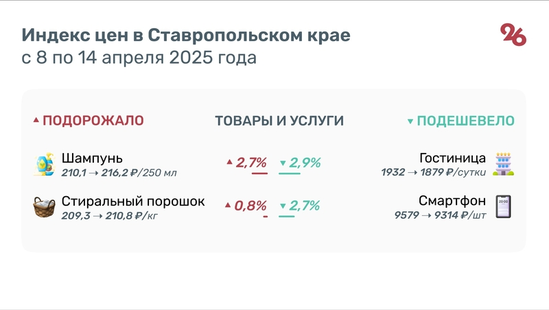 Среди непродовольственных товаров и услуг на 2,7% подорожал шампунь: с 210,1 до 216,2 руб. за 250 мл. На 0,8% больше придётся заплатить за стиральный порошок. Его стоимость выросла с 209,3 до 210,8 руб. за кг.
