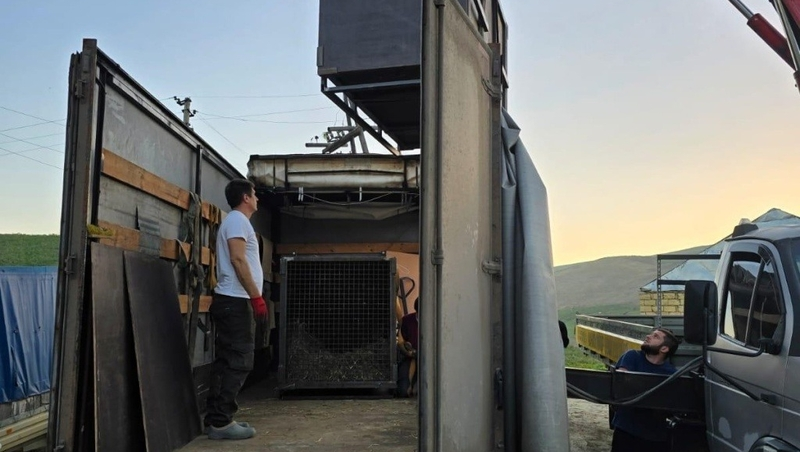 Мишек посадили в контейнеры, которые поставили в кузов грузовика. Животные будут жить в «Доме тигра» в Ленинградской области. Они в хорошем состоянии.