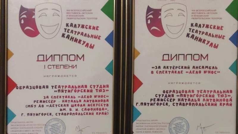 Всероссийский фестиваль детских и юношеских любительских театров «Калужские театральные каникулы» прошёл в Калуге. Пятигорский театр юного зрителя представил на суд жюри спектакль «Дело № Нос» по произведению Н. В. Гоголя.