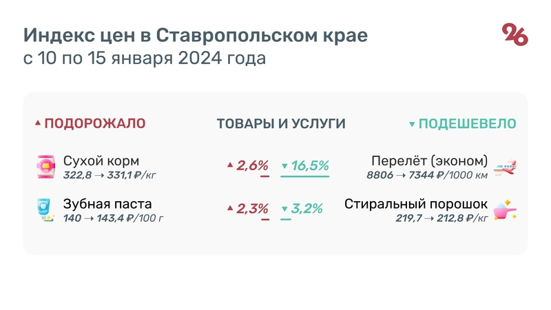 Ранее сообщалось, что годовая инфляция замедлилась на Ставрополье до 8,4%. Одной из причин, повлиявших на замедление инфляции, стал пересмотр авиакомпаниями ценовой политики на новогодние праздники.