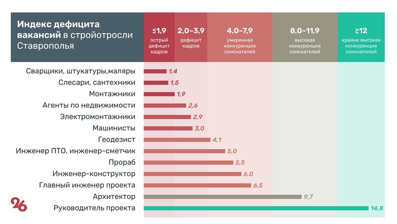 Высокую конкуренцию соискателей зафиксировали по профессии руководителя строительного проекта.