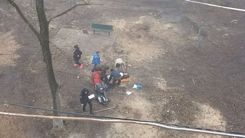 Местные жители пришли на помощь к пострадавшему, среди них оказалась профессиональная медсестра. Скорая и полиция прибыли на место инцидента.