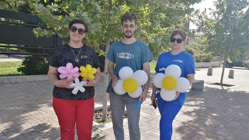 Активисты Степновского местного отделения партии раздавали воздушные шары в виде ромашек, чтобы напомнить всем жителям округа о празднике и подарить им хорошее настроение.