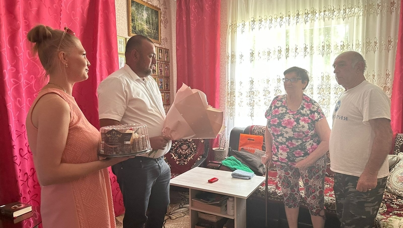 Ещё одна пара, которую поздравили, — семья Хаджаровых. Мустафир Юсупович и Тамара Иосифовна в 2023 году отметили золотую свадьбу. У них пятеро детей и шестнадцать внуков.