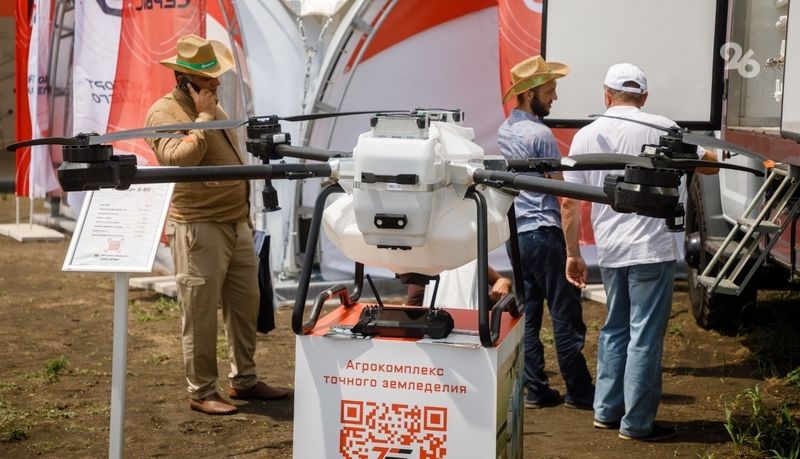 Показывали в первый день и беспилотники. Например, один из представленных агродронов может обрабатывать 18 га площади в час.