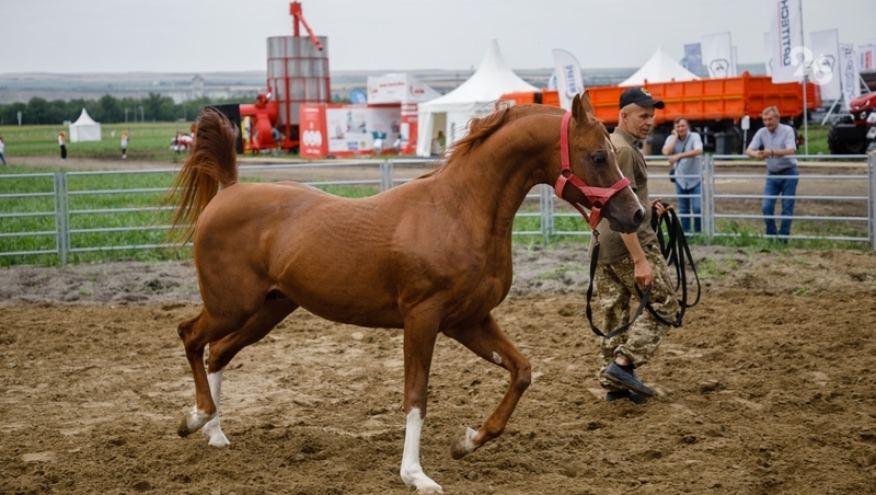 Рядом с краевой зоной — конная площадка. В зоне коневодства посетителям показали чистокровные арабские, карачаевские и верховые породы лошадей.