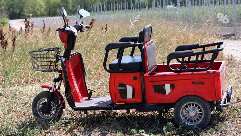 В хозяйстве есть необходимая техника, в том числе мини-мопеды на электродвигателе. На них работники передвигаются вдоль яблочных посадок, чтобы оперативно контролировать состояние растений.