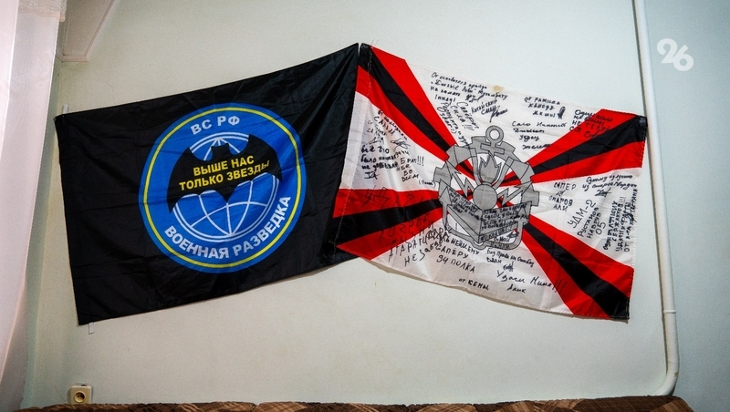 Здесь осколки мины, которые извлекли из его тела, разбитый телефон, письма от школьников, которые получали бойцы в первые месяцы спецоперации.