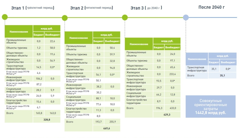 Для того, чтобы реализовать такую масштабную задачу, как преобразование КМВ в течение следующих 20 лет, потребуются 1442,8 млрд рублей. Региональные органы власти при реализации мастер-плана привлекут как средства федерального бюджета, так и частные инвестиции.