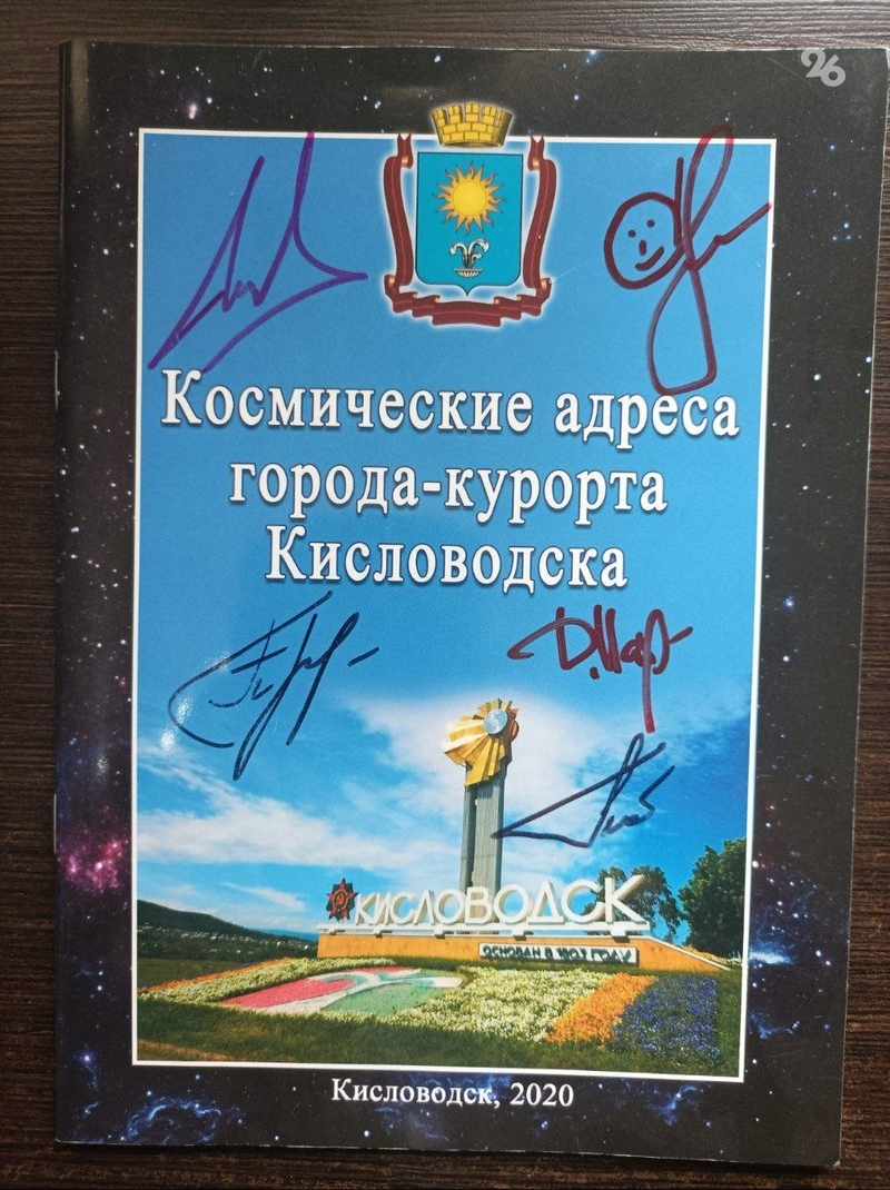 Так, буклет «Космические адреса города-курорта Кисловодска» пробыл на Международной космической станции с 21 по 29 сентября 2022 года и вернулся в музей с пятью автографами космонавтов.