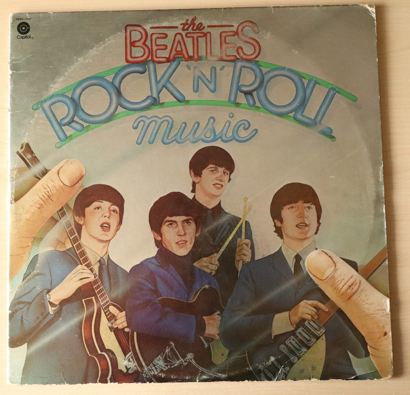 И ещё очень ценная для меня пластинка — Rock ’n’ Roll Music группы The Beatles. Она издана в США, а среди коллекционеров более всего ценятся американские и английские издания. Кроме того, эту музыку слушали в молодости мои родители. Альбом чудесным образом сохранился из прежнего винилового собрания. И экстравагантно оформлен: выполненное на конверте с помощью особого тиснения рельефно-выпуклое изображение пальцев словно подсказывает меломану, как именно нужно держать пластинку.