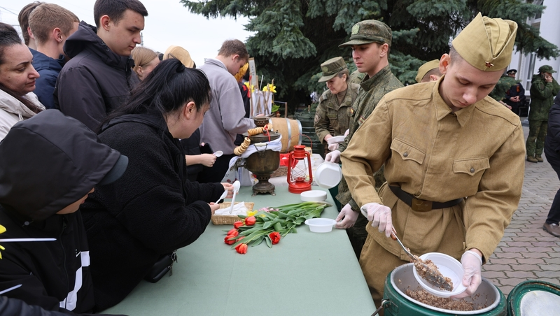 Военные медики рассказывали о том, как раненым оказывают первую помощь, и демонстрировали перевязочные средства. Для желающих отведать солдатской каши работала полевая кухня.