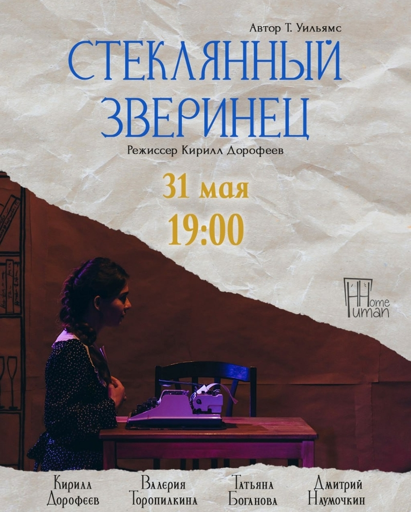В субботу в 19:00 в литературном театре HumanHome покажут спектакль «Стеклянный зверинец» (12+) по Теннесси Уильямсу. В описании постановки значится: «Драма воспоминаний, рассказывающая трагическую семейную историю о любви, горечи, человеческом одиночестве, о людях-беглецах и эфемерности иллюзий».