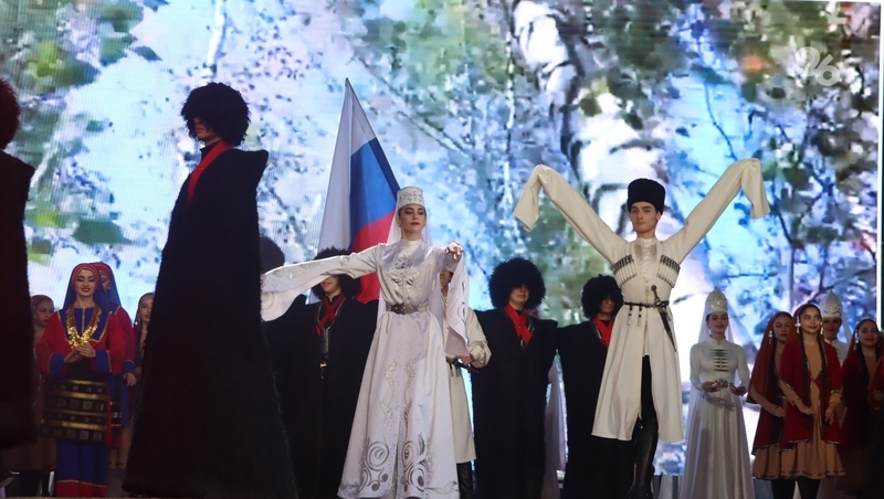 Открыли праздник танцоры ансамбля «Дружба народов». Они представили яркий микс из кавказских танцев в национальных костюмах.