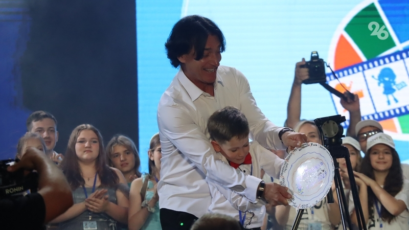 Эвклид Кюрдзидис наградил мэтра золотой медалью фестиваля «За вклад в детское кино». Дизайн награды придумала 15-летняя Маргарита Савенкова, ученица кинотеатральной школы «Хрустальный ИсточникЪ».