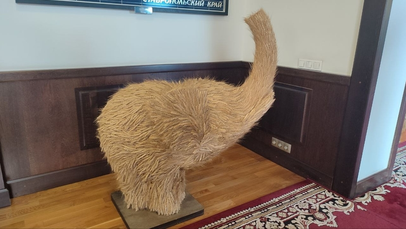 Одним из наиболее неожиданных мест, где спрятался мохнатый слоник, оказалось правительство края. Посреди коридора можно встретить жителя саванны, выполненного из колосков.