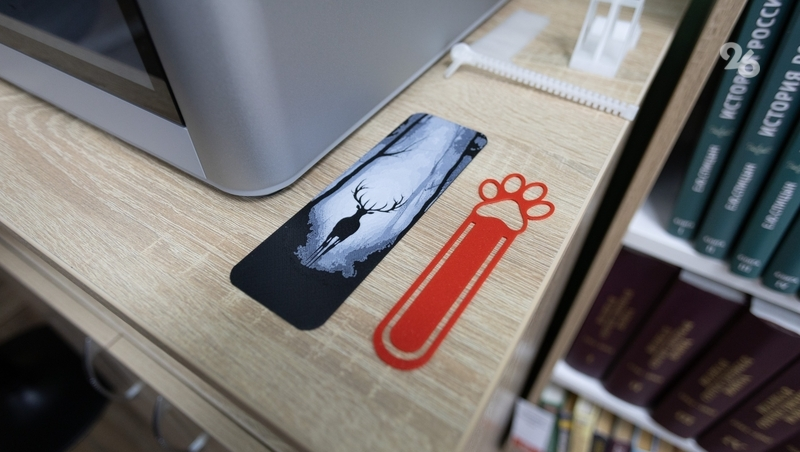 Кроме того, в обновлённом помещении появился 3D-принтер, на котором печатают подставки и держатели для книг, а также закладки, которые дарят постоянным читателям, рассказал инженер-программист Андрей Переломов.