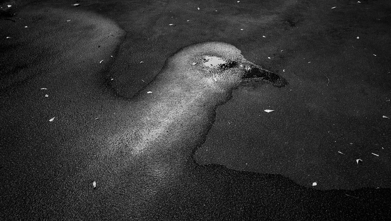 Андрей Лоптев представил фрагмент проекта «Одушевлённые улицы: грани повседневности». В него входят более 100 фотографий родного города, сделанных в 2020–2025 годы. Помимо городских улиц, Лоптев снимает и жанровые фото. Порой сюжеты создаёт сама природа — например, лужа сложилась в причудливую форму птицы.