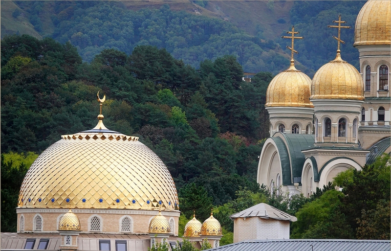 Фотохудожник из Кисловодска Валентин Айвазов тоже черпает вдохновение, путешествуя по горам Северного Кавказа. Но удачный кадр при достаточном умении и везении, оказывается, можно сделать и в пяти минутах от дома. Главное — найти оптимальный ракурс, раскрывает секрет собеседник. Яркое доказательство этому — фотография «Два храма», олицетворяющая мир и согласие на древней земле многоконфессионального, полиэтнического Кавказа.
