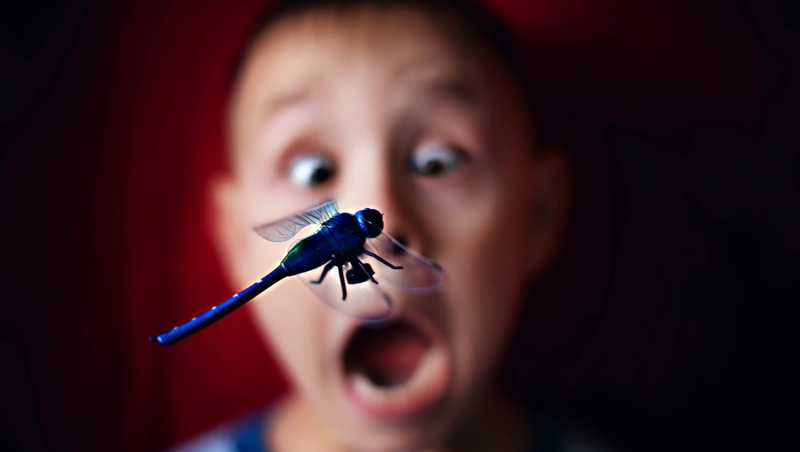 Мама троих детей в своих работах исследует яркий и непосредственный мир детства. Как в фотографии «Мальчик и стрекоза», где проявляется вся гамма чувств ребёнка — от радости до восторга и удивления. Это не коллаж, а реальный кадр, в котором стрекоза, правда, была игрушечной, уточнила фотохудожник. Для Евгении очень важны искренность и достоверность кадра.