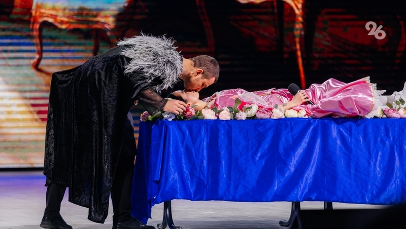 Роль воина исполнял Андрей Черкасов, а в образе принцессы перед зрителями предстала его партнёрша по команде Маша.