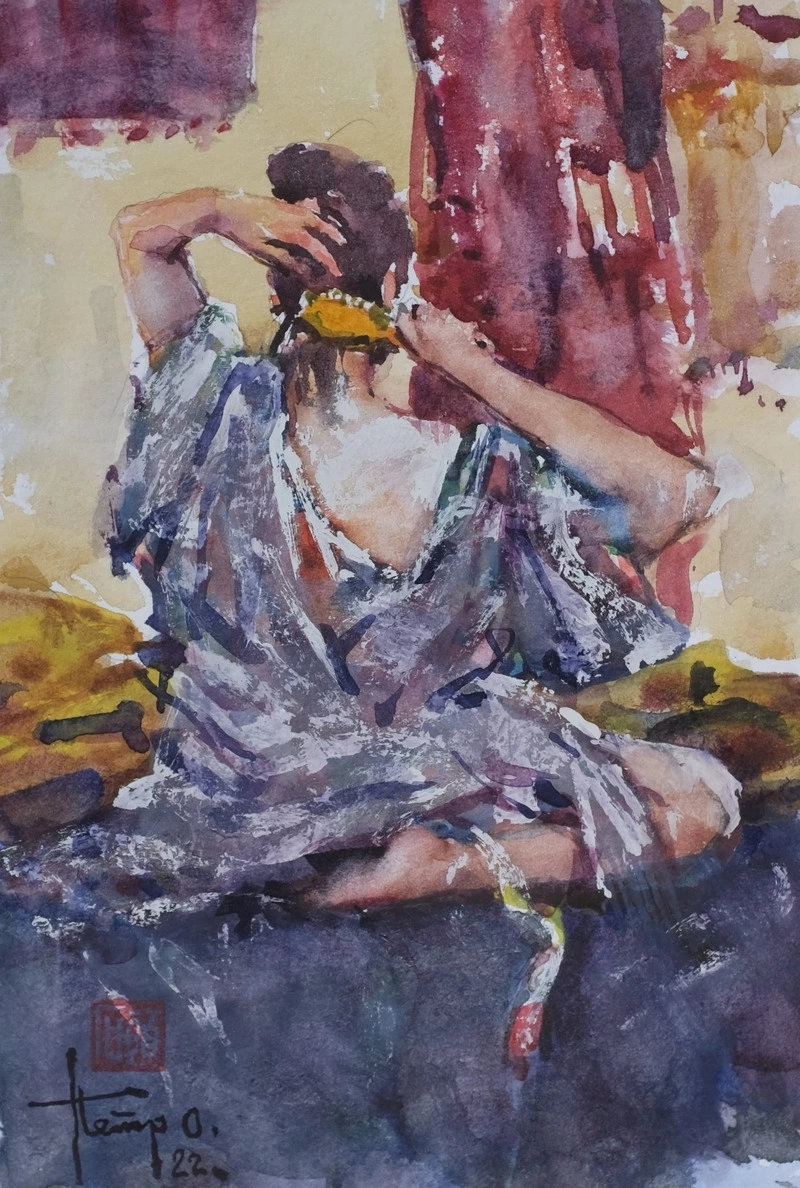 — Это происходит всегда по-разному. Иногда просто работаю с моделью, с натурой и поначалу вроде нет каких-то идей. Делаю очень много набросков, зарисовок. Модель привыкает к мастерской и художнику, ты привыкаешь к модели, потом она чувствует себя свободнее, органичнее, и, наконец, наступает момент, когда рождается образ. Иногда наоборот — сразу приходит озарение, возникает идея и остается лишь найти подходящую модель. Каждая картина требует тщательно выверенного композиционного решения, чтобы уловить все нюансы, зафиксировать характер модели даже в постановочной работе.