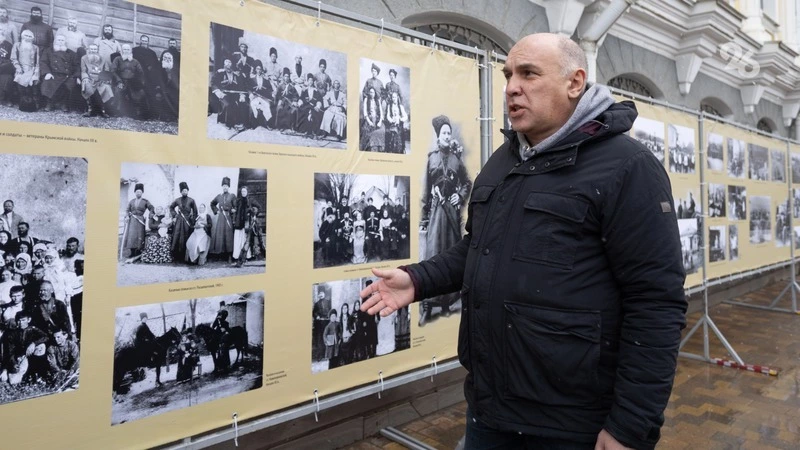 «Этническая карта Ставрополья» открывает цикл выставок, посвящённых Году единства народов России. Её презентацию провёл заведующий отделом этнографии музея, кандидат исторических наук Андрей Гордиенко. Он отметил, что в музее накопилась богатая коллекция фотографий с конца ХIХ века и вплоть до последних десятилетий — есть как работы профессиональных мастеров, так и любительские снимки. Благодаря этому составлена экспозиция — увлекательная панорама жизни разных народов.