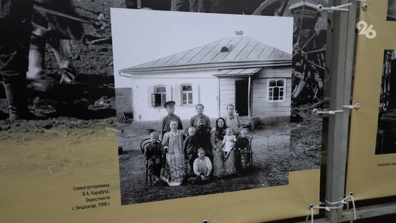 В начале XX века в Ставропольской губернии существовало всего два города — Ставрополь и Святой Крест, который сейчас известен как Будённовск. Основная же часть населения проживала в сельской местности. Смотрим фотографии: вот пастухи гонят стадо быков. На следующем снимке крестьяне, занятые работой на сеялке, в которую запряжена лошадь. В 1908 году в селе Бешпагир была сделана фотография семьи хуторянина В. А. Карабута: 11 человек выстроились на фоне хаты.