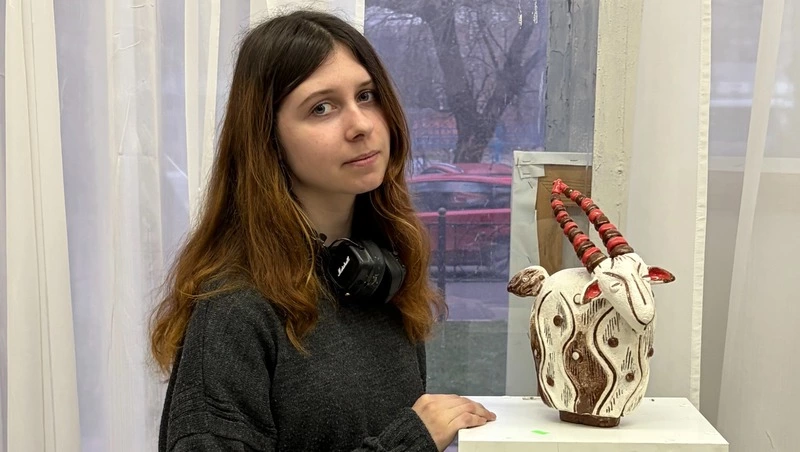 «Нам дали творческое задание по стилизации животных. Я выросла в маленьком городе и часто видела коз. Работа заняла полтора месяца — от идеи до обжига, покрытия глазурью и повторной термической обработки в печи»,
