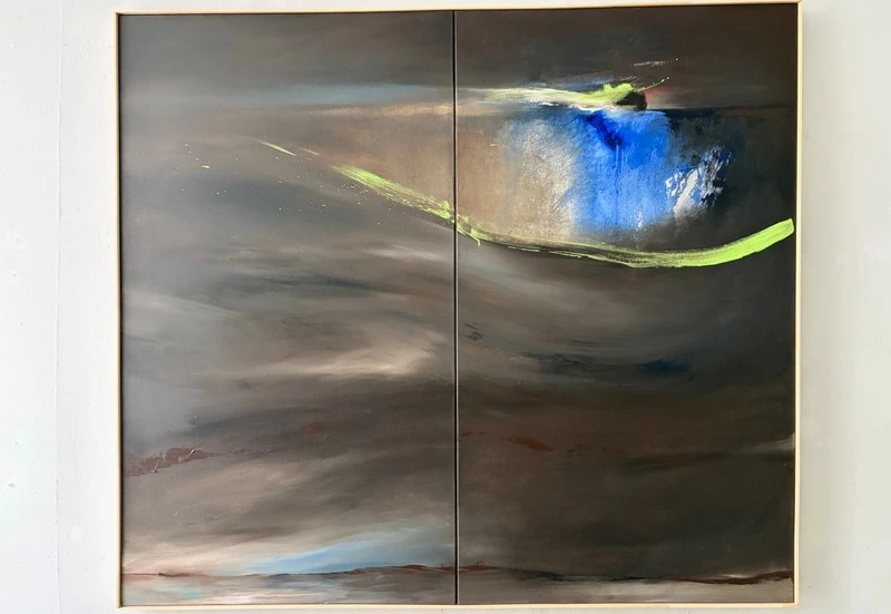 «В училище я преподаю графику. А моя творческая практика –абстракции, либо работы на грани с ней. Выход на большой формат — новый опыт для меня и огромная ответственность. Так получилось, что это самая крупная работа в экспозиции, и она задаёт тон всей выставке. Надеюсь, моя картина выведет зрителя на диалог с самим собой»,