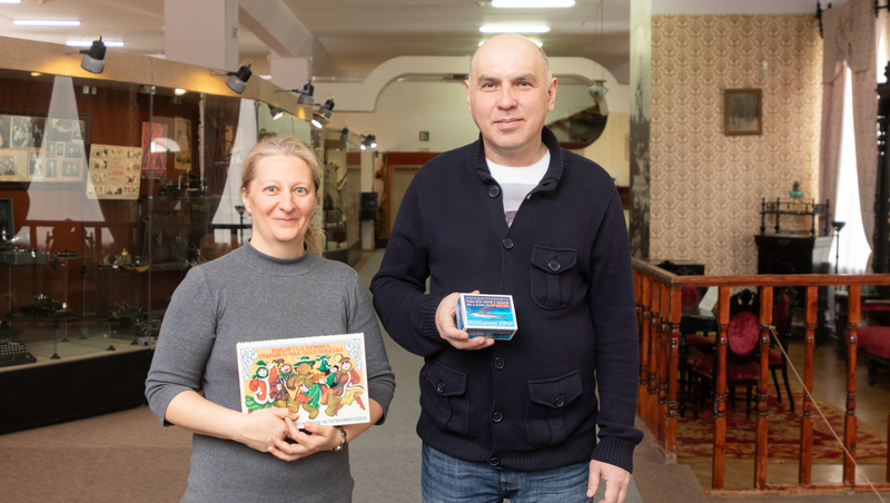 Не менее интересные экспонаты показывает Ольга Лысанская. Вот набор спичечных коробков с изображением русских самоваров, ещё комплекты с рыбами всех морей и океанов, портретами русских полководцев и флотоводцев. Самый яркий — тот, что посвящен народным играм и развлечениям. На спичечных коробках изображены различные сюжеты, а также рассказывается о новогодних традициях, которые существовали на Руси.