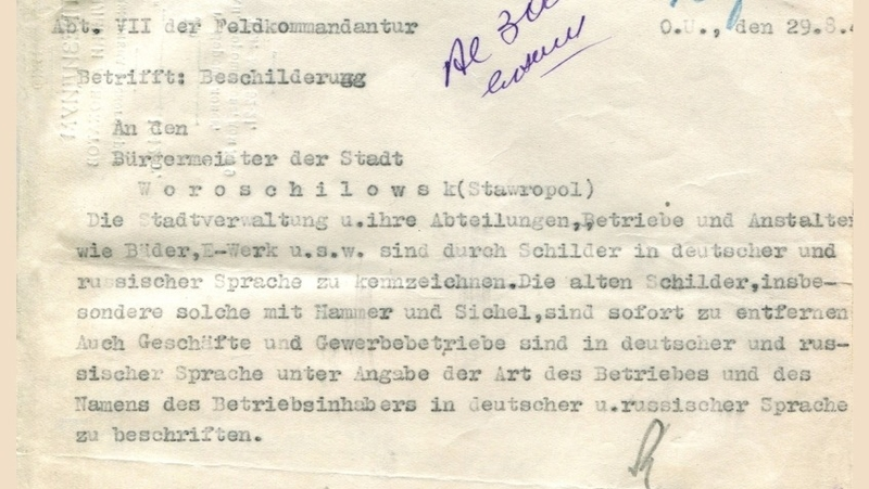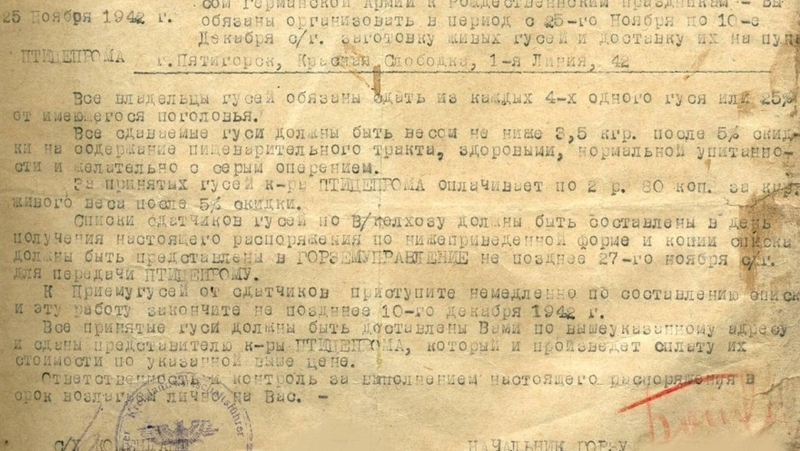 Уже в первые дни фашистской оккупации на Ставрополье создают партизанские отряды. В фондах Государственного архива Ставропольского края хранятся документы о действиях партизан в 1942 году.