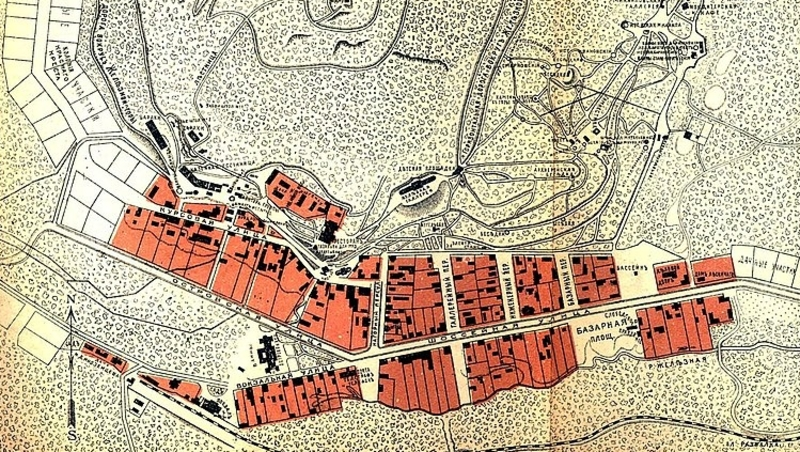 «Маленькое курортное поселение основали в Горячеводской долине, между отрогами Машука. Сперва оно было сезонным — ванны для целебных процедур вырубали в травертине прямо у источника, над ними строили лёгкие деревянные домики-баньки»,