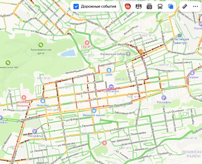 Из-за погодных условий на дорогах образовалась непростая ситуация: транспорт встал. Город сковали рекордные десятибалльные пробки. Ставропольчане жаловались, что по полчаса не могли уехать на маршрутке, а цены на такси взлетели до небес.