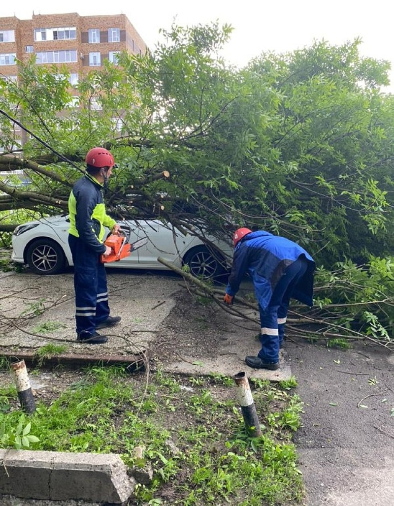 Во время разгула стихии падали как крупные ветки, так и деревья целиком. Большое дерево упало на улице Чапаева, № 65, сообщили местные жители. Оно перегородило проезжую часть.