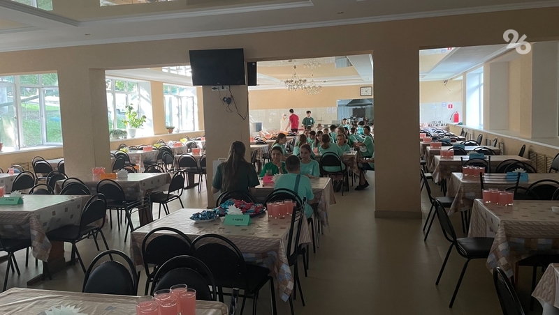 После тихого часа детей кормят полдником в столовой — для них приготовлены конфеты и печенье с ягодным киселём. Приехавшие на отдых ребята особенно хвалят меню. По словам Анастасии Анихенко и Софии Русевой из старшего отряда, которые приехали из Антрацитовского района, в лагере очень вкусно и хорошо кормят.