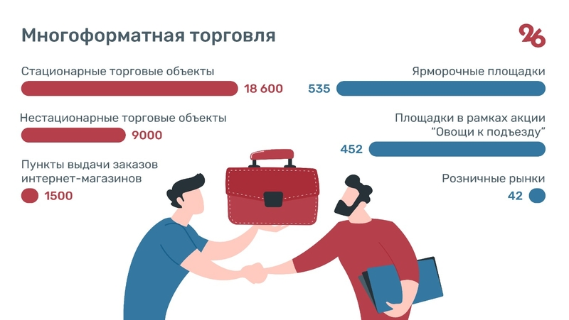 Замминистра экономического развития Ставрополья Евгений Полькин в докладе о развитии потребительского рынка края рассказал, что в торговле, общественном питании и сфере услуг занято больше всего экономически активного населения региона. Сегодня в крае работает 18,6 тыс. объектов в торговле и почти 10,3 тыс. — в общественном питании и услугах.