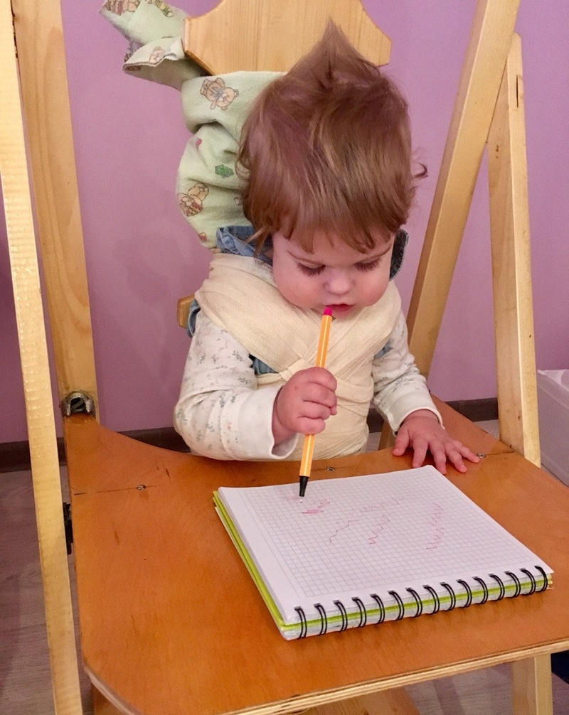 — Она почти бегает, почти сама себя обслуживает, сама ходит в туалет, сама раздевается, купается, пьёт. Фразовой речи пока нет, но внезапно алфавит выучила.