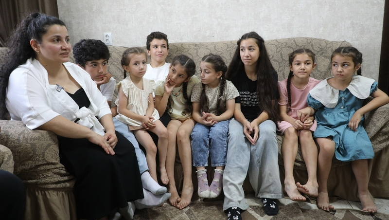 К визитам журналистов Шаинидзе-Оганесян, похоже, привыкли. Встречают, по-кавказски радушно приглашая в дом. Здесь с папой и мамой все восемь детей: Георгий, Давид, Софа, Мария, Кристина, Милена, Ариана, Диана. Старшему — Георгию — 14 лет, младшей — пять.