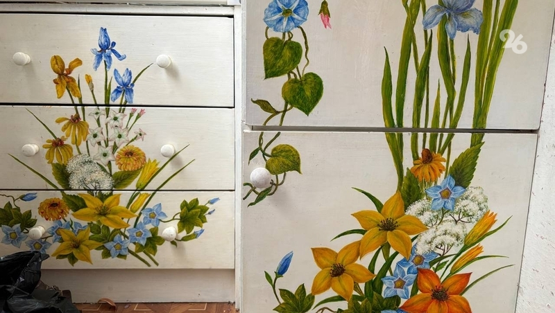 Ещё одно увлечение Людмилы — роспись мебели. Несколько шкафов и комодов в её квартире украшены своими руками.