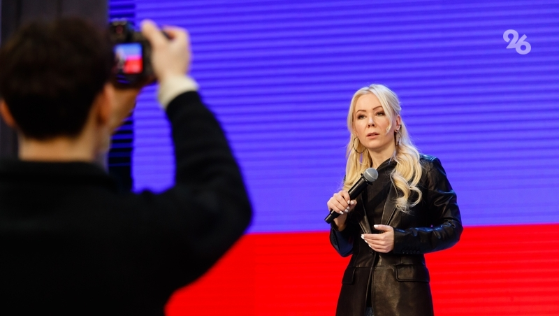 С этой целью она прилетела и на Ставрополье в пятницу, 13 декабря. Для встречи с интернет-звездой в конференц-зале аграрного вуза собрались около 1 тыс. школьников и студентов краевой столицы. Гостья вышла на сцену под песню «Я русский» певца Шамана и предложила аудитории проскандировать «Россия! Россия!»