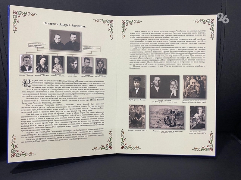 Кроме основных сведений, в альбомах указываются семейные реликвии, памятные истории и биографии. По словам основательницы творческой студии, история каждой ячейки общества уникальна, а свой герой есть в каждой семье.