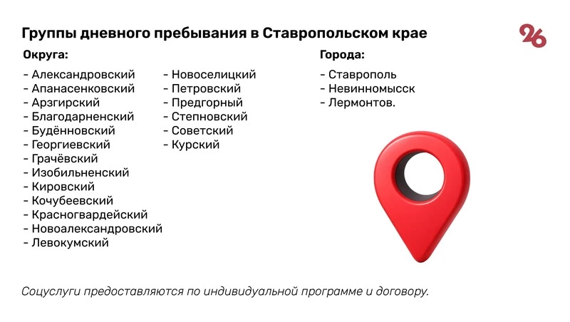 Социальную поддержку людей с деменцией курирует минсоцзащиты Ставропольского края. В 2019 году регион вошёл в число пилотных субъектов РФ по созданию системы долговременного ухода за пожилыми людьми и инвалидами. Для них открыли группы дневного пребывания в центрах социального обслуживания населения 22 муниципальных и городских округов. Проект развивают при участии Минтруда России и благотворительного фонда «Старость в радость».