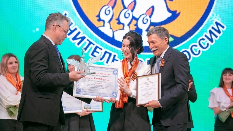 Губернатор вручил дипломы и денежные сертификаты победителям и призёрам в номинации «Лучший учитель». Первое место заняла учитель русского языка и литературы школы №18 Ставрополя Наталия Черниговская, которая стала обладателем двух премий на общую сумму 800 тыс. рублей и статуэтки в виде хрустального пеликана — символа конкурса. Диплом второй степени и премия в размере 660 тыс. рублей достались учителю истории школы №10 Ессентуков Юлии Черновой. Третье место и денежный сертификат на 540 тыс. рублей присудили учителю математики пятигорской школы №5 им. Дубинного Валентине Савенко.