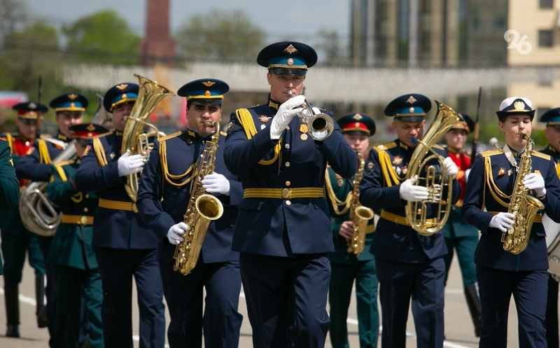 Закончился парад маршем сводного военного оркестра Ставропольского гарнизона, который исполнил песню «Победа».