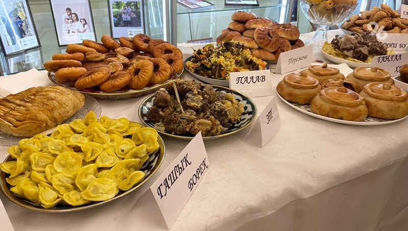 Жители Дагестана представили на своём подворье народные блюда: чуду, курзе, кабкил чурпа, абрикосовую кашу, хинкали и другие изделия из мяса и теста. Молодые девушки стояли рядом в национальных костюмах.