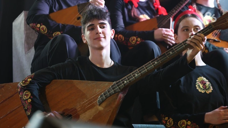 В завершении концерта на сцену вышел оркестр колледжа искусств и сыграл на русских народных инструментах. Музыканты по команде дирижёра встречали наигрышами каждого из награждённых.