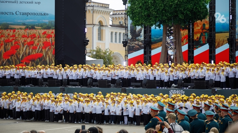 На площади Ленина с Днём города и края ставропольцев поздравил тысячеголосый хор. Под руководством дирижера Александра Островерхова сборный коллектив детей со всех городов и округов края выступил на главной сцене и исполнил патриотические песни.