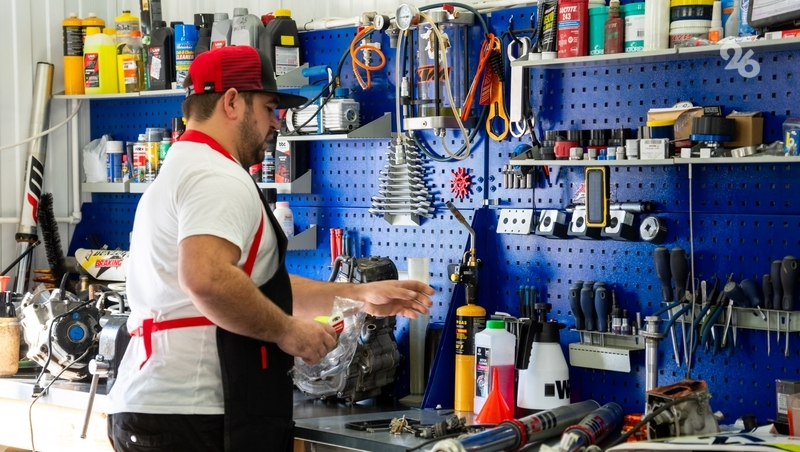 Артём создавал мастерскую несколько лет. Помещение он арендует, а оборудование и инструменты собирал постепенно. Сейчас он проводит для журналистов экскурсию, рассказывая о новых приобретениях на средства соцконтракта. Необходимые детали для импортных мотоциклов приобретает в интернете, иногда одна маленькая запчасть может стоить десятки тысяч рублей, не говоря уже об инструментах.